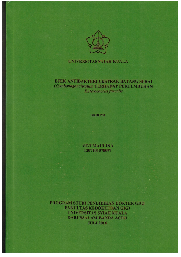 Baca Juga : EFEK ANTIBAKTERI EKSTRAK DAUN JERUK PURUT (CITRUS HYSTRIX) TERHADAP PERTUMBUHAN ENTEROCOCCUS FAECALIS (Desy Havizhah, 2019)