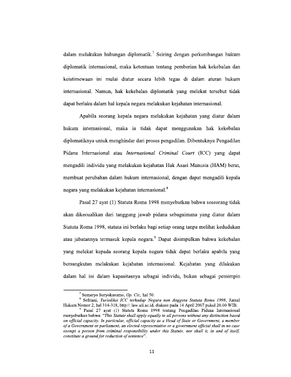 Meydhitasari P, TINJAUAN YURIDIS TERHADAP HAK KEKEBALAN KEPALA NEGARA BERDASARKAN HUKUM INTERNASIONAL. Banda Aceh Fakultas Hukum,2013