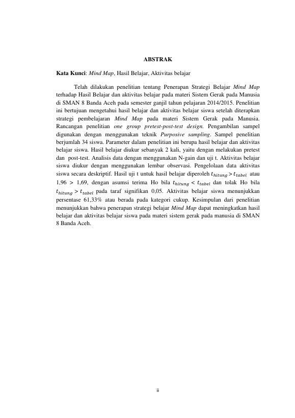 Lia Zaradiva, PENERAPAN STRATEGI BELAJAR MIND MAP TERHADAP HASIL BELAJAR DAN AKTIVITAS BELAJAR SISWA PADA MATERI SISTEM GERAK PADA MANUSIA DI KELAS XI SMAN 8 BANDA ACEH PENERAPAN STRATEGI BELAJAR MIND MAP TERHADAP HASIL BELAJAR DAN AKTIVITAS BELAJAR SISWA PADA MATERI SISTEM GERAK PADA MANUSIA DI KELAS XI SMAN 8 BANDA ACEH. Banda Aceh Universitas Syiah Kuala,2016