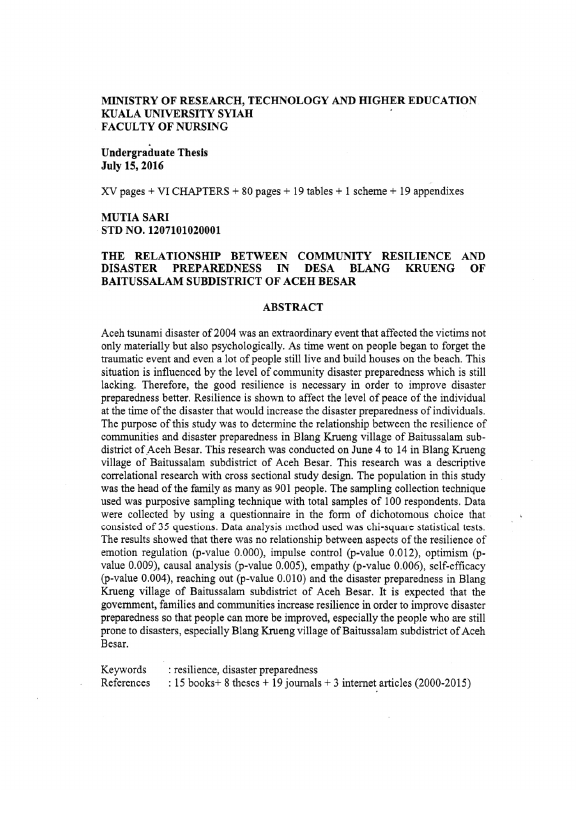 Baca Juga : HUBUNGAN ANTARA PENGETAHUAN MASYARAKAT DENGAN SIKAP KESIAPSIAGAAN BENCANA DI DESA LAMBUNG KOTA BANDA ACEH (Zulfan, 2015)