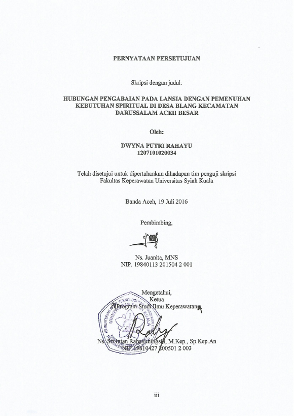 Baca Juga : GAMBARAN PEMENUHAN KEBUTUHAN SPIRITUAL PADA LANSIA DI DESA LAMDOM KECAMATAN LUENG BATA BANDA ACEH TAHUN 2012 (Akbar Muzain, 2022)