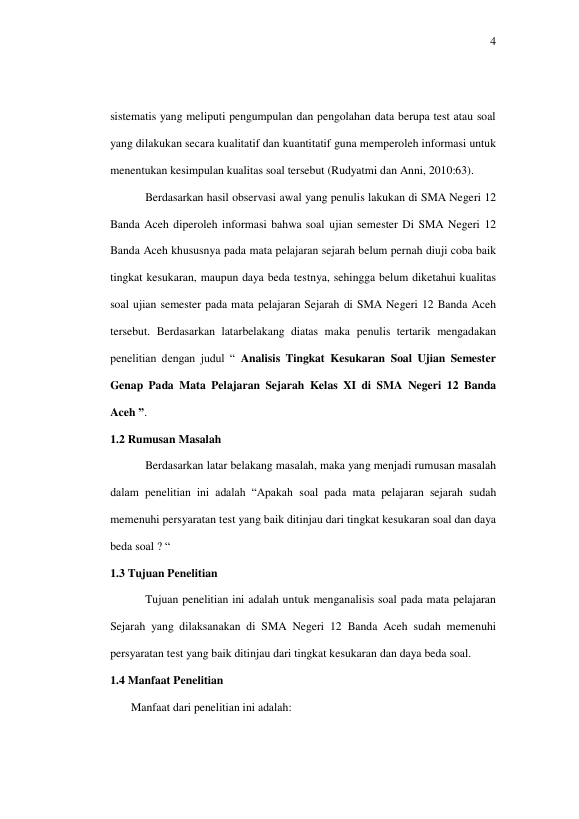 Saidil Mudhahar, ANALISIS TINGKAT KESUKARAN SOAL UJIAN SEMESTER GENAP PADA MATA PELAJARAN SEJARAH KELAS XI DI SMA NEGERI 12 BANDA ACEH TAHUN AJARAN 2013/2014. Banda Aceh Universitas Syiah Kuala,2016
