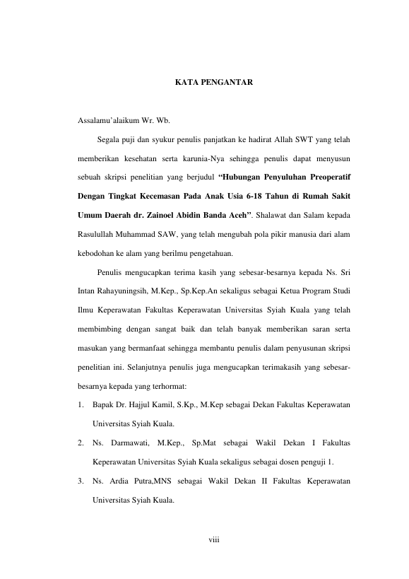 MIFTAHURRAHMI, HUBUNGAN PENYULUHAN PREOPERATIF DENGAN TINGKAT KECEMASAN PADA ANAK USIA 6-18 TAHUN DI RUMAH SAKIT UMUM DAERAH DR. ZAINOEL ABIDIN BANDA ACEH. Banda Aceh Universitas Syiah Kuala,2016