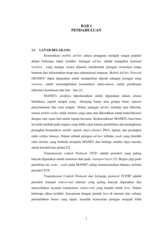 Fhahlefy, EVALUASI KINERJA TCP CONGESTION CONTROL PADA JARINGAN MOBILE AD-HOC NETWORK (MANET) MENGGUNAKAN SIMULATOR JARINGAN NS-3. Banda Aceh Universitas Syiah Kuala,2016