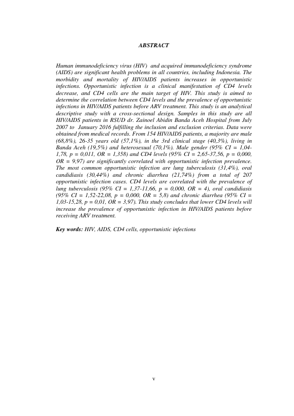 Baca Juga : GAMBARAN CD4 PADA BERBAGAI STADIUM KLINIS HIV/AIDS DENGAN INFEKSI OPORTUNISTIK TUBERKULOSIS DAN NON TUBERKULOSIS DI RSUD DR. ZAINOEL ABIDIN BANDA ACEH (M. Fachrial Imam, 2017)