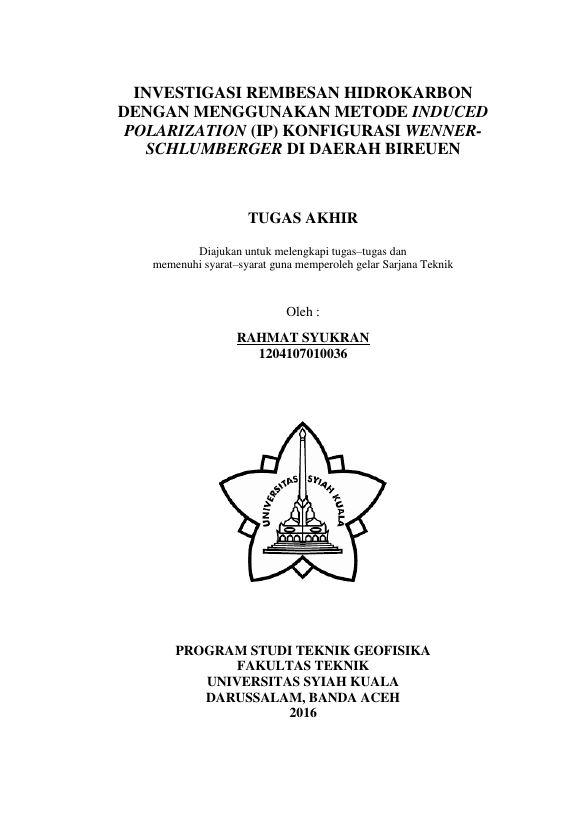 Baca Juga : IDENTIFIKASI STRUKTUR BAWAH PERMUKAAN JEMBATAN LAMNYONG, DARUSSALAM MENGGUNAKAN METODE INDUCED POLARIZATION (IP) (ZAHDATUL AINUN, 2018)
