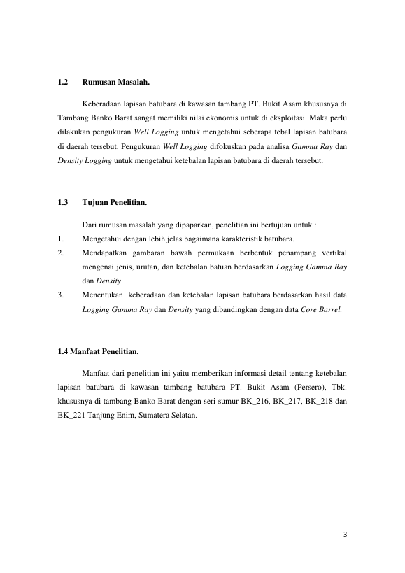 Annisa Bestari, STUDI DATA LOGGING GAMMA RAY DAN DENSITY UNTUK MENGETAHUI KETEBALAN LAPISAN BATUBARA DI TAMBANG PT. BUKIT ASAM, SUMATERA SELATAN.. Banda Aceh Universitas Syiah Kuala,2016