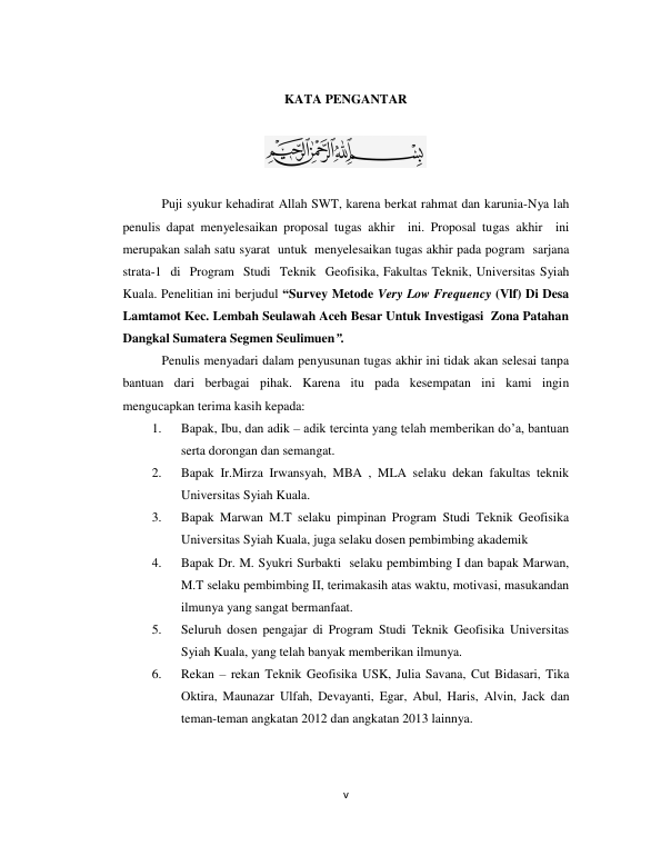 Narita, SURVEY METODE VERY LOW FREQUENCY (VLF) DI DESA LAMTAMOT KEC. LEMBAH SEULAWAH ACEH BESAR UNTUK INVESTIGASI ZONA PATAHAN DANGKAL SUMATERA SEGMEN SEULIMUEN. Banda Aceh Universitas Syiah Kuala,2016