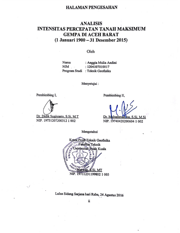 Baca Juga : ANALISIS RESPON SPEKTRA TERHADAP PERCEPATAN GERAKAN TANAH AKIBAT GEMPA ACEH TAHUN 2010 – 2013 (David Sarana, 2015)