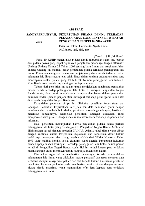 Sandy Afriansyah, PENJATUHAN PIDANA DENDA TERHADAP PELANGGARAN LALU LINTAS DI WILAYAH PENGADILAN NEGERI BANDA ACEH. Banda Aceh Universitas Syiah Kuala,2016