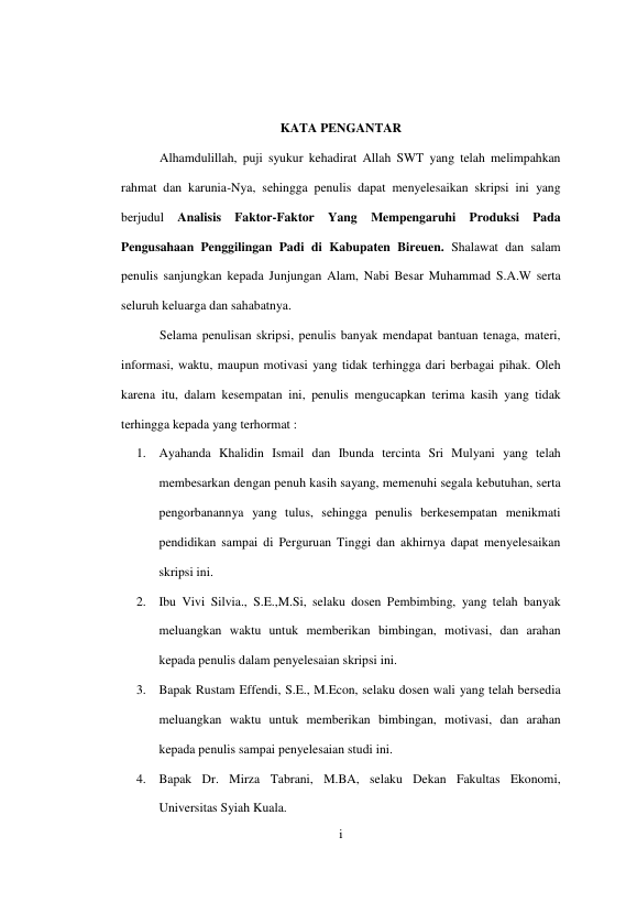 Khairil Rizal, ANALISIS FAKTOR-FAKTOR YANG MEMPENGARUHI PRODUKSI PADA PENGUSAHAAN PENGGILINGAN PADI DI KABUPATEN BIREUEN. Banda Aceh Fakultas Ekonomi,2013