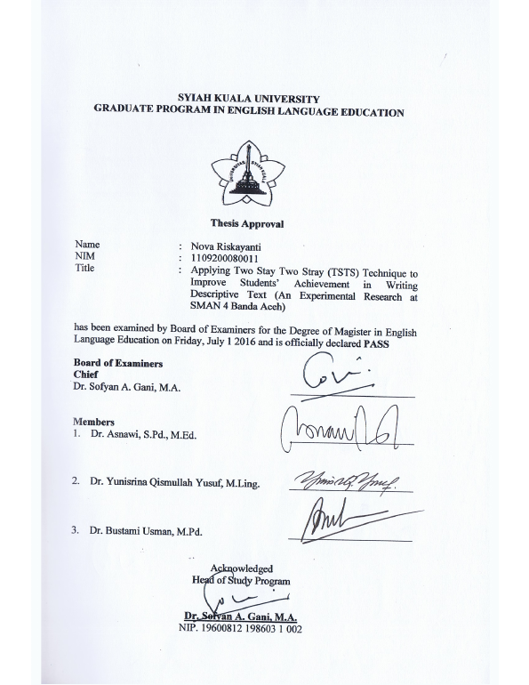 Baca Juga : TEACHING STUDENTS’ WRITING SKILL THROUGH STAY AND STRAY TECHNIQUE (AN EXPERIMENTAL STUDY AT SMPN 13 BANDA ACEH) (Putri Rizki, 2017)