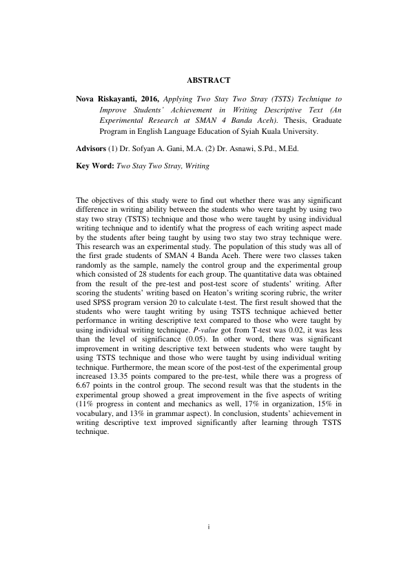 Baca Juga : TEACHING STUDENTS’ WRITING SKILL THROUGH STAY AND STRAY TECHNIQUE (AN EXPERIMENTAL STUDY AT SMPN 13 BANDA ACEH) (Putri Rizki, 2017)