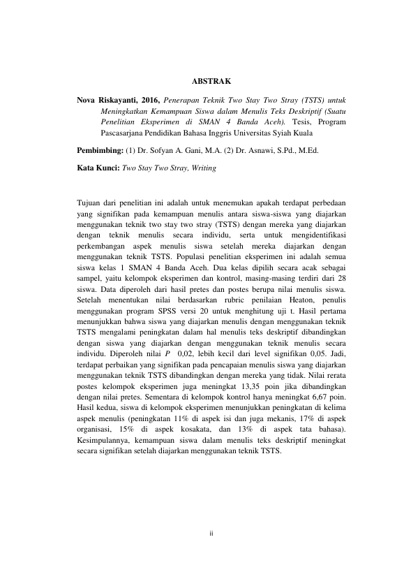 Baca Juga : TEACHING STUDENTS’ WRITING SKILL THROUGH STAY AND STRAY TECHNIQUE (AN EXPERIMENTAL STUDY AT SMPN 13 BANDA ACEH) (Putri Rizki, 2017)