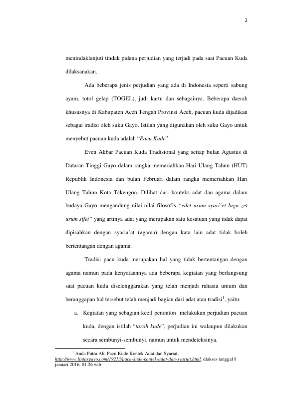 Baca Juga : TRADISI PACU KUDE DALAM MASYARAKAT GAYO KABUPATEN ACEH TENGAH SUATU TINJAUAN SEJARAH (1850-2013) (Linawati, 2014)