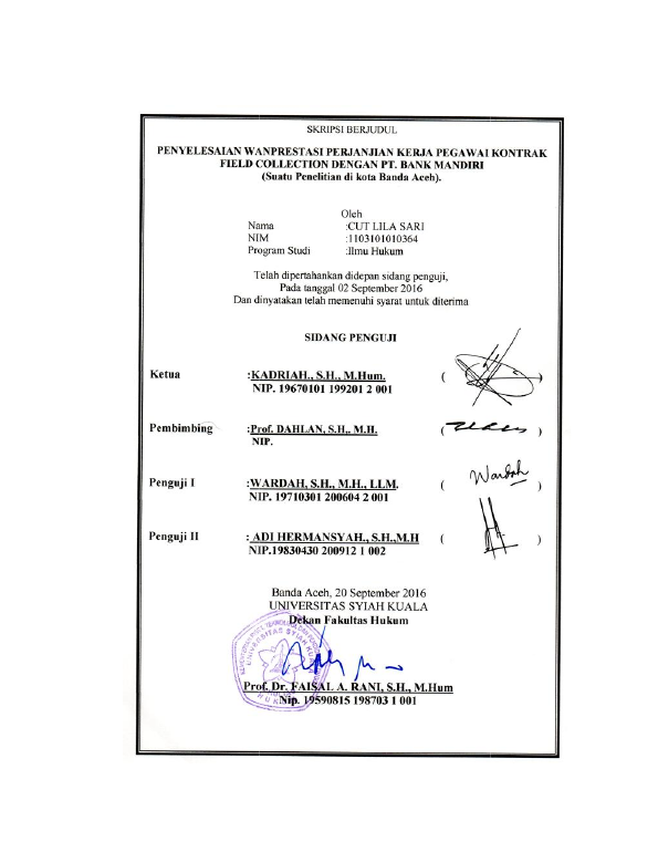 Baca Juga : WANPRESTASI DALAM PELAKSANAAN KONTRAK KERJA KONSTRUKSI PEMBANGUNAN BANGUNAN BAWAH JEMBATAN ANTARA PT. REKAYASA DENGAN DINAS PEKERJAAN UMUM (PENELITIAN PADA PEMBANGUNAN JEMBATAN DAH DI KEC.RUNDING KOTA SUBUSSALAM) (RIZKITA MAYDA MELALA, 2015)
