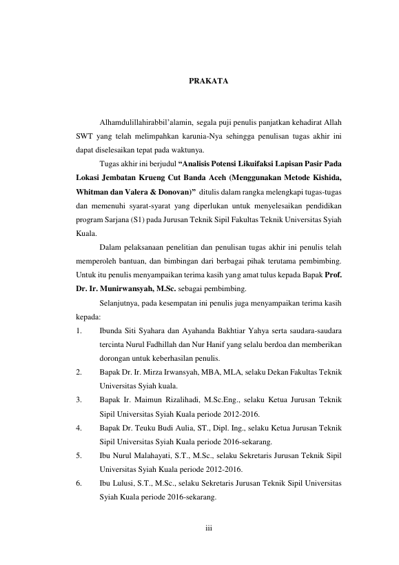 Akmal Zulfi, ANALISIS POTENSI LIKUIFAKSI LAPISAN PASIR PADA LOKASI JEMBATAN KRUENG CUT (MENGGUNAKAN METODE KISHIDA, WHITMAN DAN VALERA & DONOVAN). Banda Aceh Universitas Syiah Kuala,2016