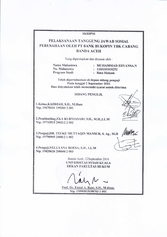 Baca Juga : PELAKSANAAN TANGGUNG JAWAB SOSIAL PERUSAHAAN OLEH PT BANK BNI CABANG BANDA ACEH (ANGGA FERRISTIA, 2016)