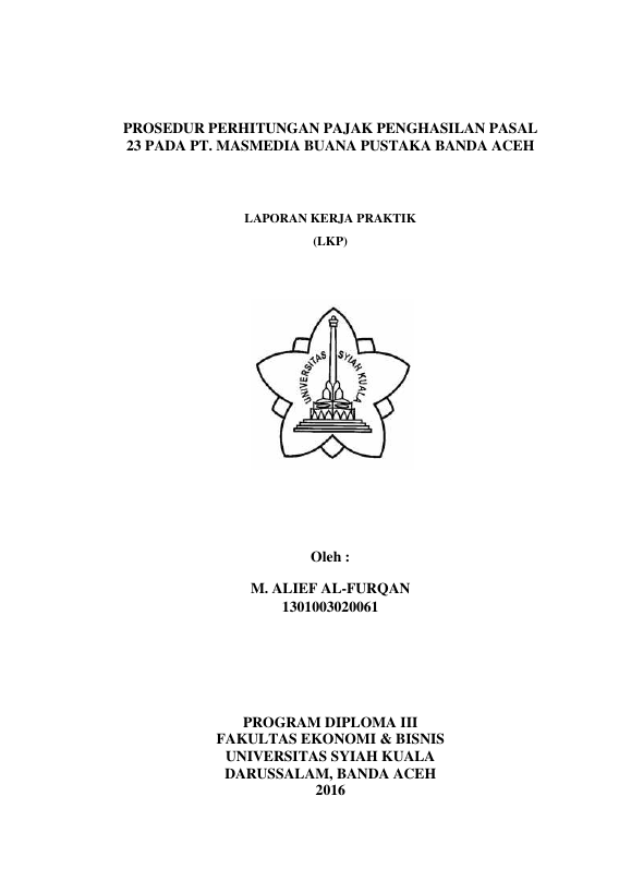 M. ALIEF AL-FURQAN, PROSEDUR PERHITUNGAN PAJAK PENGHASILAN PASAL 23 PADA PT. MASMEDIA BUANA PUSTAKA BANDA ACEH. Banda Aceh Universitas Syiah Kuala,2016