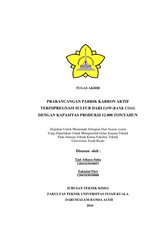 Baca Juga : PRARANCANGAN PABRIK KARBON AKTIF TERIMPREGNASI SULFUR DENGAN KAPASITAS PRODUKSI 12.000 TON/TAHUN (Tjut Athaya Suha, 2016)