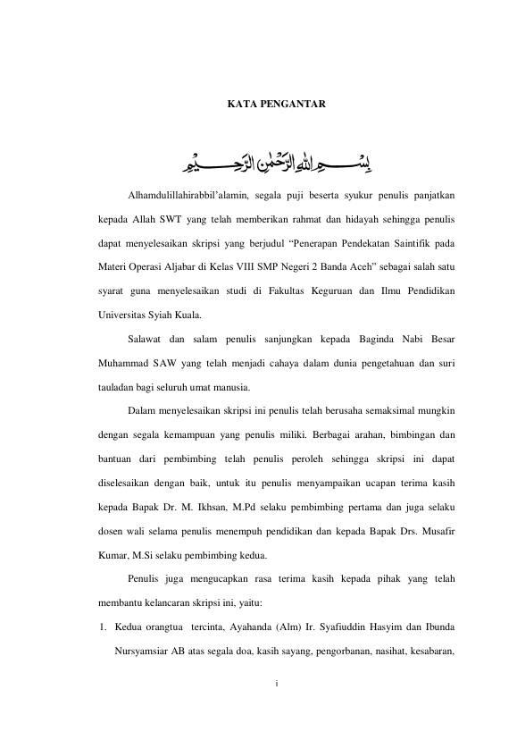 Naziela Rizkina Balqis Hsb, PENERAPAN PENDEKATAN SAINTIFIK PADA MATERI OPERASI ALJABAR DI KELAS VIII SMP NEGERI 2 BANDA ACEH. Banda Aceh Universitas Syiah Kuala,2016