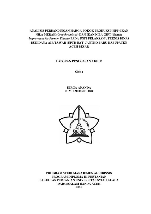 Baca Juga : ANALISIS PENDAPATAN PADA USAHA PENDEDERAN BENIH IKAN LELE DUMBO (CLARIAS GARIEPINUS BRUCHELL) DI BALAI AIR TAWAR JANTHO BARU KABUPATEN ACEH BESAR PROVINSI ACEH (Abdul Rauf, 2016)