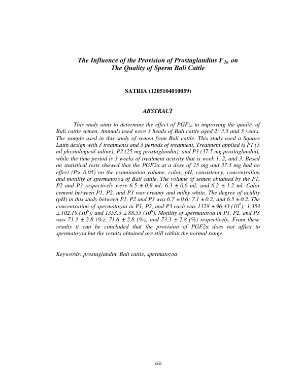 Baca Juga : PENGARUH PEMBERIAN HORMON PROSTAGLANDIN F2? (PGF2?) TERHADAP PENINGKATAN KADAR TESTOSTERON SAPI BALI DI BALAI INSEMINASI BUATAN DAERAH PROVINSI BENGKULU (Dewi Ratna Sari, 2017)