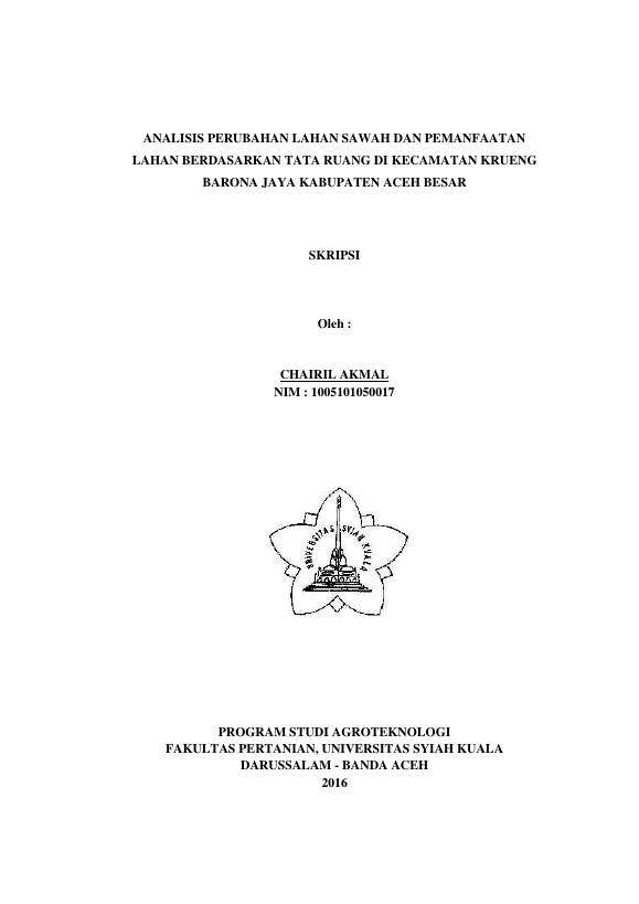 Baca Juga : KONVERSI LAHAN SAWAH DAN DAMPAKNYA TERHADAP PRODUKSI PADI DAN POLA KERJA PELAKU KONVERSI DI KECAMATAN KRUENG BARONA JAYA KABUPATEN ACEH BESAR (cut ardelina miranda, 2014)