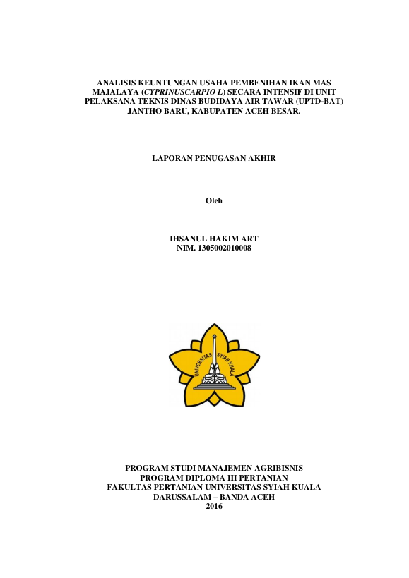 Baca Juga : ANALISIS BIAYA DAN MANFAAT USAHA PEMBENIHAN IKAN MAS PADA BBI DI DESA JANTHO BARU KABUPATEN ACEH BESAR (Dirra Meilia, 2020)