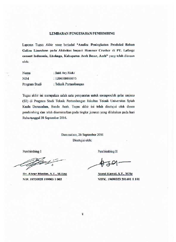 Baca Juga : ANALISA PENINGKATAN PRODUKSI BAHAN GALIAN LIMESTONE PADA AKTIVITAS IMPACT HAMMER CRUSHER DI PT. LAFARGE CEMENT INDONESIA, LHOKNGA, KABUPATEN ACEH BESAR, ACEH (Said ary rizki, 2016)