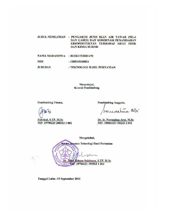 Baca Juga : PEMBUATAN UDANG ANALOG RENDAH KOLESTEROL DARI SURIMI IKAN LEUBIM HITAM (CHANTHIDERMIS MACULATA) DAN IKAN NILA (OREOCHROMIS NILOTICUS) (M AKBAR HARDIAN SYAH, 2017)