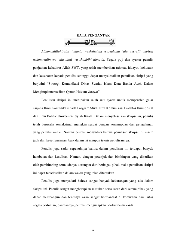 REDHA PURNAMA, STRATEGI KOMUNIKASI DINAS SYARIAT ISLAM KOTA BANDA ACEH DALAM MENGIMPLEMENTASIKAN QANUN HUKUM JINAYAT. Banda Aceh Universitas Syiah Kuala,2016