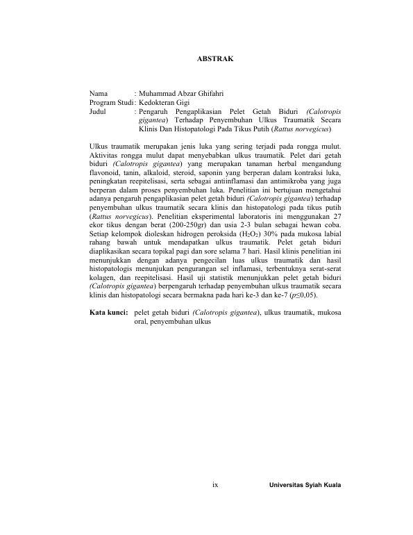 Baca Juga : APLIKASI SUPERNATAN GETAH BIDURI TERHADAP PENYEMBUHAN ULSER PADA TIKUS PUTIH (RATTUS NORVEGICUS) SECARA KLINIS DAN HISTOPATOLOGIS. (Syaiba Putri, 2023)