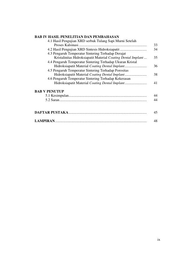 Baca Juga : PENGARUH VARIASI WAKTU TAHAN SINTERING TERHADAP KARAKTERISTIK COATING DENTAL IMPLANT BERBASIS HAP DARI TULANG SAPI (MAISARAH, 2015)