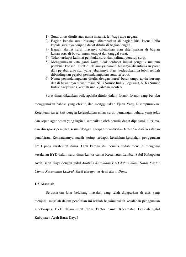 Sumarni, Analisis Kesalahan Penggunaan Ejaan Dalam Surat Dinas Kantor Camat Kecamatan Lembah Sabil Kabupaten Aceh Barat Daya. Banda Aceh Fakultas Keguruan dan Ilmu Pendidikan,2013