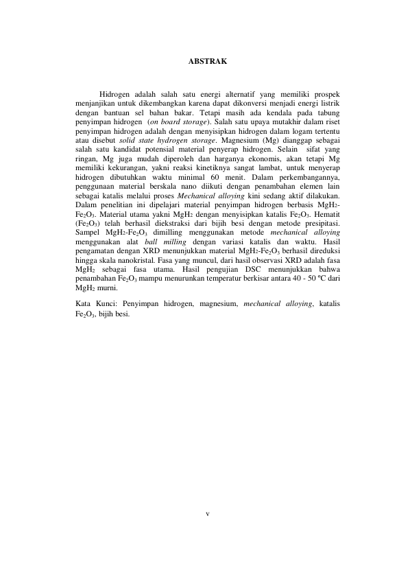 Andia Fatmaliana, STUDY MATERIAL FE2O3 UNTUK KATALIS MATERIAL PENYIMPAN HIDROGEN BERBASIS MGH2. Banda Aceh Universitas Syiah Kuala,2016