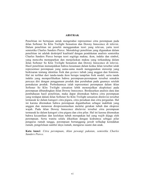 MAGHFIRAH FITRIAH, REPRESENTASI CITRA PEREMPUAN DALAM IKLAN PEWANGI PAKAIAN DI TELEVISI (ANALISIS SEMIOTIKA TERHADAP IKLAN SOFTENER SOKLIN TWILIGHT SENSATION DAN DOWNY INNOCENCE). Banda Aceh Universitas Syiah Kuala,2016