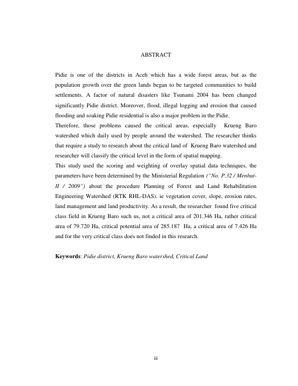 Fachra Muharyanda, ANALISIS SPATIAL KEKRITISAN LAHAN DAERAH ALIRAN SUNGAI KRUENG BARO. Banda Aceh Universitas Syiah Kuala,2016