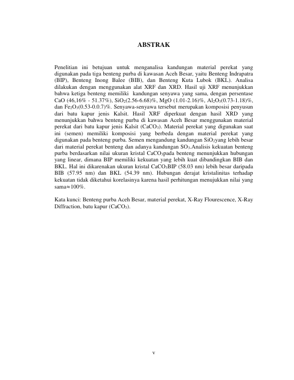 Nurul Fitri, IDENTIFIKASI MATERIAL PEREKAT PADA TIGA BENTENG PURBA DI KAWASAN ACEH BESAR. Banda Aceh FAKULTAS MATEMATIKA DAN ILMU PENGETAHUAN ALAM UNIVERSITAS SYIAH KUALA,2016