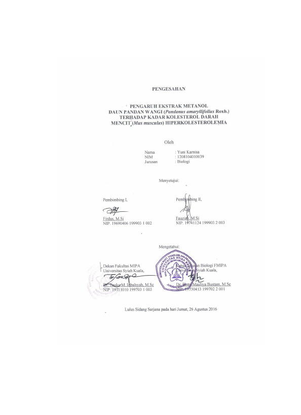 Baca Juga : PENGARUH EKSTRAK METANOL DAUN PANDAN WANGI (PANDANUS AMARYLLIFOLIUS ROXB.) TERHADAP KADAR HIGH DENSITY LIPOPROTEIN (HDL) DAN LOW DENSITY LIPOPROTEIN (LDL) DARAH TIKUS (RATTUS NOVERGICUS) HIPERKOLESTEROLEMIA (Nurlaili, 2018)