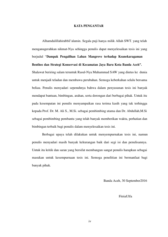 Fitria Ulfa, DAMPAK PENGALIHAN LAHAN MANGROVE TERHADAP KEANEKARAGAMAN BENTHOS DAN STRATEGI KONSERVASI DI KECAMATAN JAYA BARU KOTA BANDA ACEH. Banda Aceh Universitas Syiah Kuala,2016