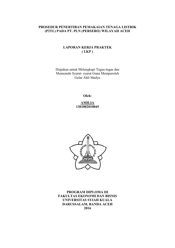 AMILIA, PROSEDUR PENERTIBAN PEMAKAIAN TENAGA LISTRIK (P2TL) PADA PT. PLN (PERSERO) WILAYAH ACEH. Banda Aceh Universitas Syiah Kuala,2016