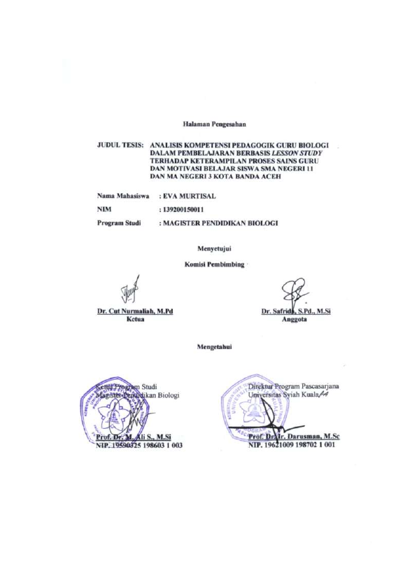 Baca Juga : ANALISIS KOMPETENSI PROFESIONAL GURU BIOLOGI DALAM PELAKSANAAN KEGIATAN PRAKTIKUM DI LABORATORIUM MELALUI LESSON STUDY DAN IMPLIKASINYA TERHADAP KETERAMPILAN PROSES SAINS DAN SIKAP ILMIAH SISWA SMA NEGERI 2 DAN MA NEGERI 2 DI KOTA BANDA ACEH (Vivi Yunisa Harahap, 2016)
