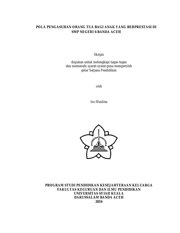 Iza Maulina, POLA PENGASUHAN ORANG TUA BAGI ANAK YANG BERPRESTASI DI SMP NEGERI 6 BANDA ACEH. Banda Aceh FAKULTAS KEGURUAN DAN ILMU PENDIDIKAN UNIVERSITAS SYIAH KUALA,2016