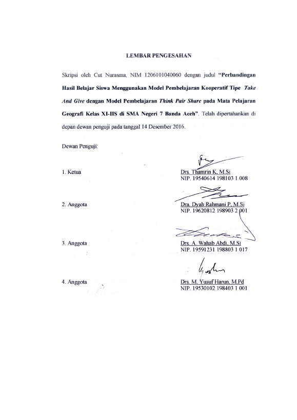 Baca Juga : PERBANDINGAN HASIL BELAJAR SISWA MENGGUNAKAN MODEL PEMBELAJARAN KOOPERATIF TIPE TAKE AND GIVE DENGAN MODEL PEMBELAJARAN THINK PAIR SHARE PADA MATA PELAJARAN GEOGRAFI KELAS XI-IIS DI SMA NEGERI 7 BANDA ACEH (Cut Nurasma, 2016)