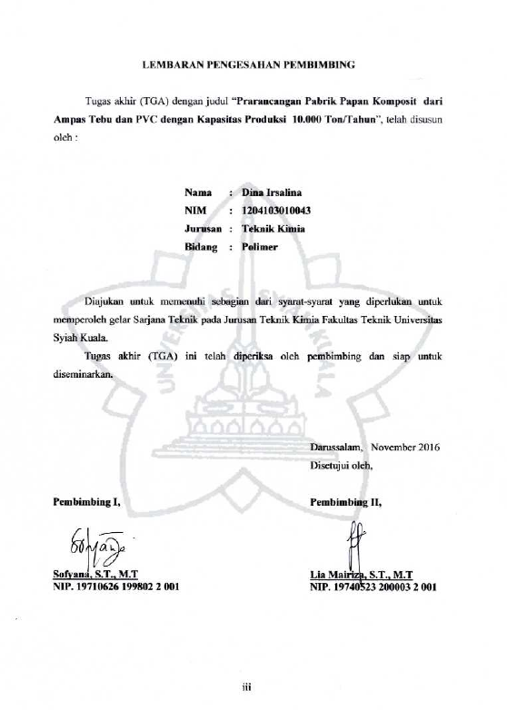 Baca Juga : PRARANCANGAN PABRIK PAPAN KOMPOSIT DARI AMPAS TEBU DAN PVC DENGAN KAPASITAS PRODUKSI 10.000 TON/TAHUN (Dina Irsalina, 2016)