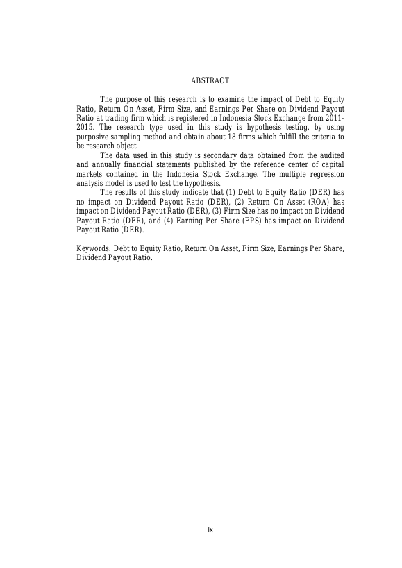 Baca Juga : THE IMPACT OF EARNINGS PER SHARE, DIVIDEND PAYOUT RATIO, DEBT TO EQUITY RATIO, AND INVESTMENT OPPORTUNITY SET ON STOCK RETURN (EMPIRICAL STUDY ON CONSUMER GOODS INDUSTRY SECTOR COMPANIES LISTED ON INDONESIA STOCK EXCHANGE FOR THE YEAR 2011-2013) (FITRIA MANDARAIRA, 2015)