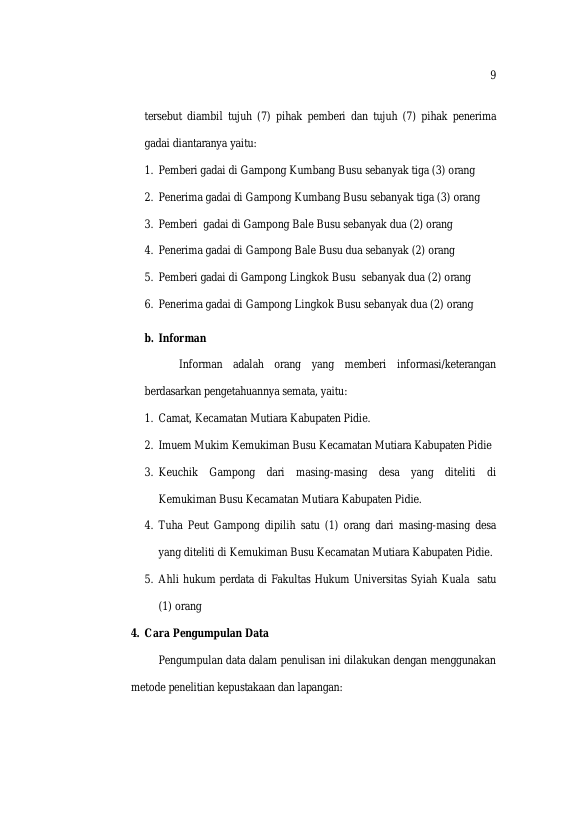 Rizki Hamdani, TINJAUAN YURIDIS TERHADAP PELAKSANAAN PERJANJIAN GADAI TANAH SAWAH DI KEMUKIMAN BUSU KECAMATAN MUTIARA KABUPATEN PIDIE. Banda Aceh Fakultas Hukum Universitas Syiah Kuala,2016