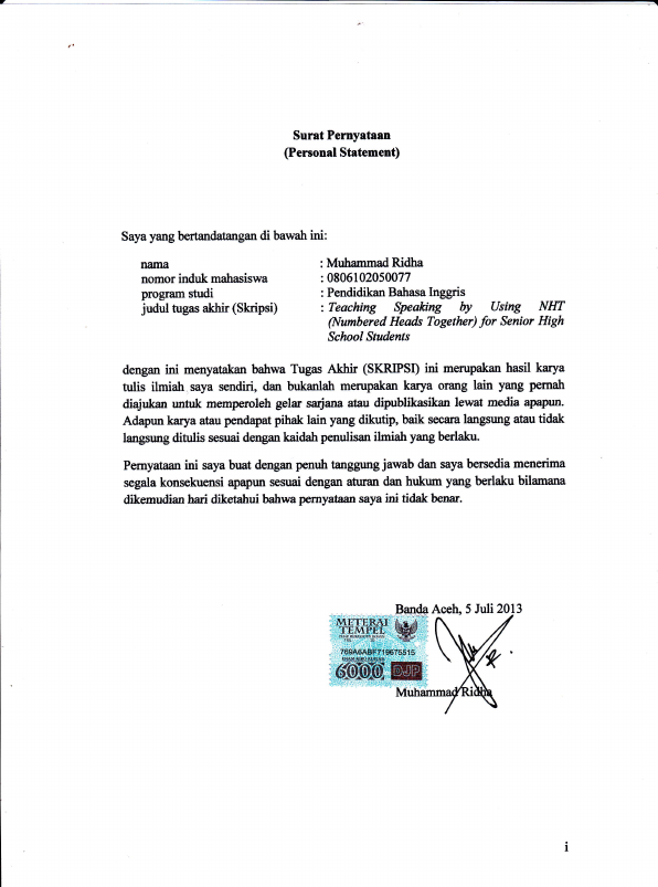 Baca Juga : TEACHING SPEAKING BY USING NHT (NUMBERED HEADS TOGETHER) FOR SENIOR HIGH SCHOOL STUDENTS (Muhammad Ridha, 2013)