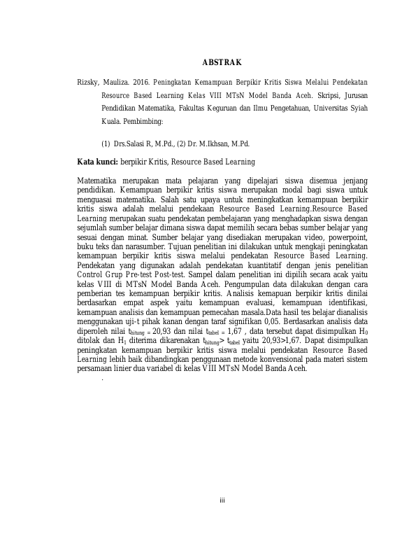 Baca Juga : PENERAPAN MODEL PEMBELAJARAN PROBLEM BASED LEARNING (PBL) DALAM UPAYA MENINGKATKAN KEMAMPUAN BERPIKIR KRITIS SISWA PADA MATERI RELASI DAN FUNGSI KELAS VIII MTSN MODEL BANDA ACEH (NURUL HAKIKI, 2019)